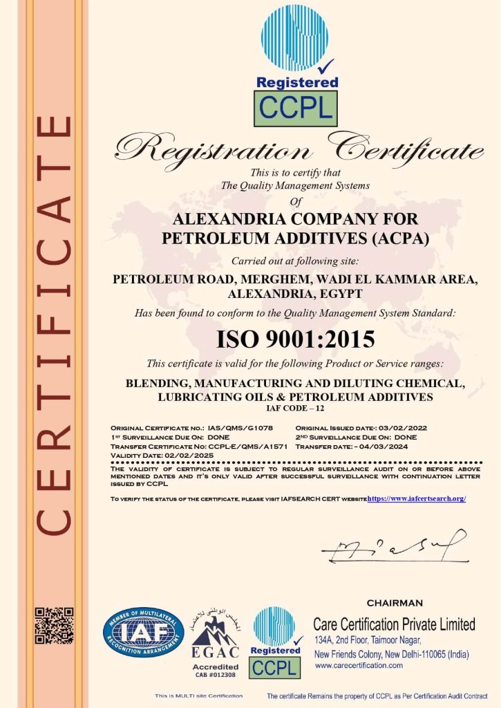 In a globalized world characterized by interconnected economies, diverse industries, and cross-border collaborations, ensuring quality, consistency, and credibility is paramount. International accreditation serves as a vital mechanism to achieve these goals by establishing recognized standards and evaluating organizations, institutions, and processes against these standards. Since ACPA is a major player in the field of additives in Egypt, So we always ensure to validates our competence, reliability, and adherence to best practices within various sectors, contributing to the enhancement of trust and confidence on a worldwide scale.