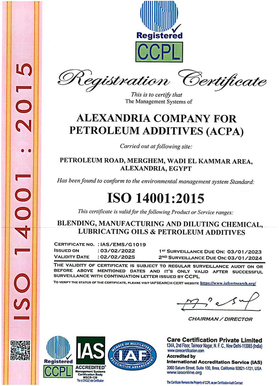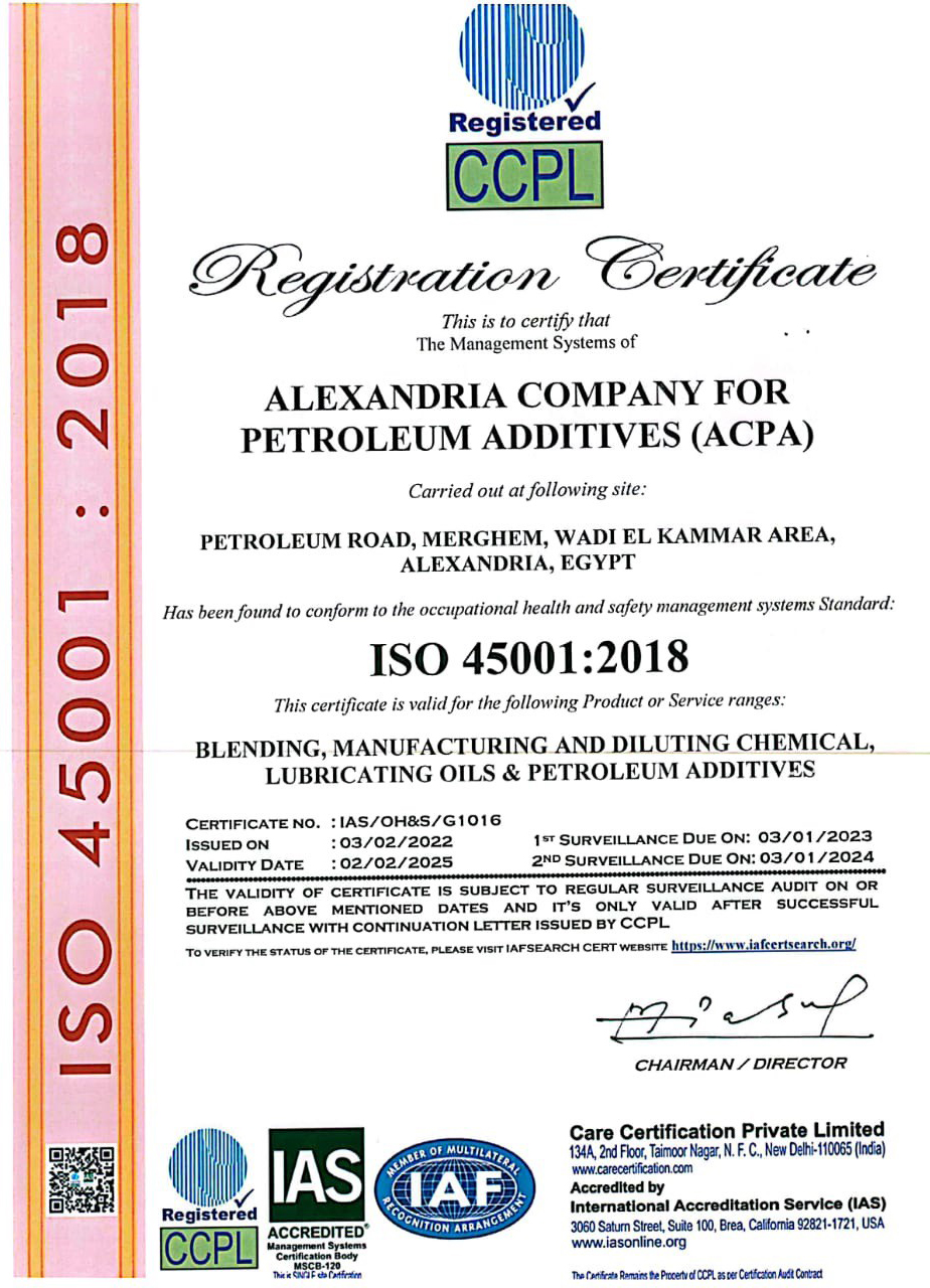تعمل الإدارة العليا بشركة الإسكندرية للإضافات البترولية (ACPA) بجد لتوفير بيئة عمل صحية وآمنة لجميع الموظفين ، وبناءً على ذلك ، تلتزم الإدارة العليا بما يلي: التطبيق الفعال لأنظمة إدارة الصحة والسلامة والبيئة OHSAS 18001: 2007 & ISO 14001: 2004 حماية سلامة جميع الموظفين من جميع المخاطر المتعلقة بأنشطة الشركة وعملياتها.الحفاظ على صحة جميع الموظفين وكذلك ضمان عدم تأثرهم سلبًا بأنشطة الشركة وعملياتها بالإضافة إلى العوامل البيئية المؤثرة. لم يتم إنجاز جميع الأعمال بأمان أو نتج عنها عامل بيئي مؤثر ، حيث أن العمل الذي لم يتم إنجازه بعد إلزام جميع المقاولين / الموردين / الزوار بمراعاة معايير الصحة والسلامة والبيئة الخاصة بهم مشاركة واستشارة جميع الموظفين في التحسين المستمر لعناصر أنظمة إدارة الصحة والسلامة والبيئة ، وكذلك إطلاعهم على جميع الموضوعات المتعلقة بعملية السلامة وشؤون البيئة الصحية. إجراء عملية المسح المنتظم للحوادث في كل وردية عمل واتخاذ الإجراءات التصحيحية اللازمة تجاه هذه الحوادث التطبيق الفعال للمتطلبات القانونية والمتطلبات الأخرى المتعلقة بعوامل الصحة والسلامة والبيئة المتعلقة بأنشطة الشركة وعملياتها إجراء القياسات الدورية للمخاطر التي تحدث في مكان العمل بالإضافة إلى السيطرة عليها توفير معدات السلامة والصحة المهنية المطلوبة وضرورية للمخاطر المتعلقة بأنشطة الشركة المختلفة التطبيق الفعال لخطة النفوذ وإجراء الاختبارات اللازمة للتأكد من فعاليتها. إنشاء أهداف الصحة والسلامة والبيئة والسلامة وكذلك تنفيذ البرامج المطلوبة لتحقيق هذه الأهداف من أجل تقليل أو منع تأثير المخاطر على أنشطة الشركة وعملياتها المتعلقة بأداء الصحة والسلامة.